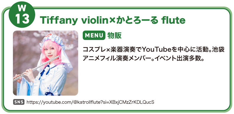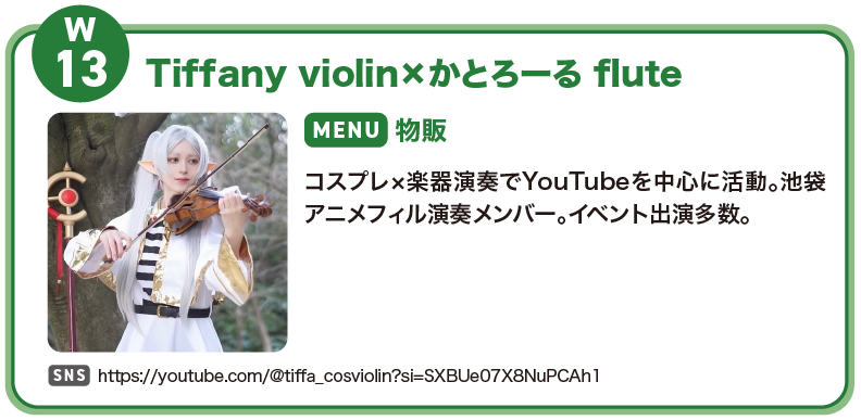 ピアノ・ヴァイオリン・フルートの本格的な楽器演奏が融合したここでしか見られないコスプレパフォーマンス。